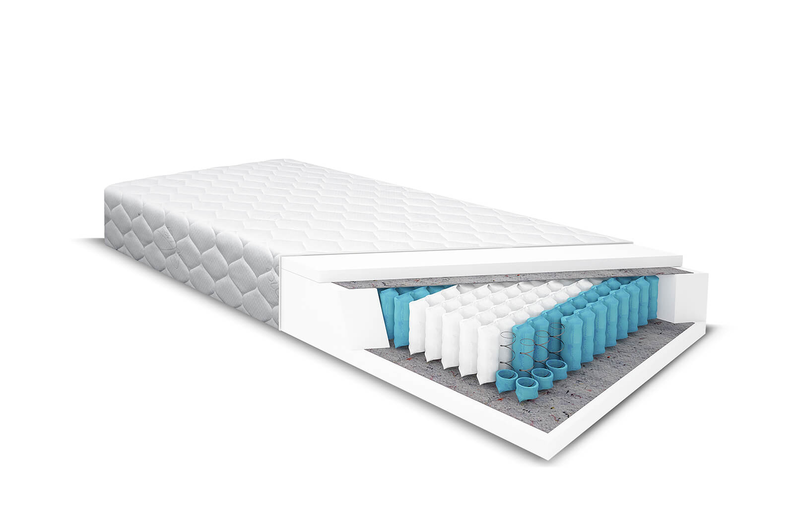 Materace z systemem sprężyn kieszeniowych doceniane są przez osoby borykajace się z problemami kręgosłupa, bowiem sprzyjają one zachowaniu właściwej pozycji snu. By materac był jeszcze bardziej komfortowy dla użytkownika zastosowano system siedmiu stref twardości, który poprzez zróżnicowany stopień sprężystości doskonale podpiera poszczególne części ciała.